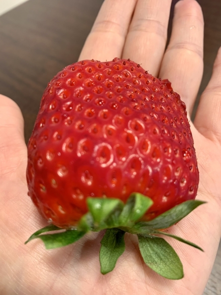 静岡に在る「なかじま園」の❝きらぴ香❞という品種だそうで、一粒が普通のイチゴの4倍くらいあります。