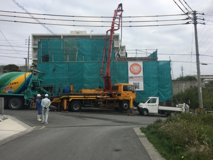2月27日木曜日 八重瀬町のC様二世帯住宅新築工事のR階スラブコンクリート打設でした。
