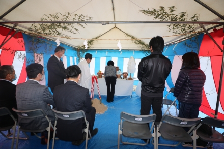 写真は先週行われた地鎮祭の様子。