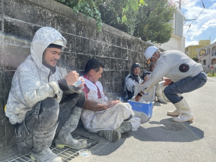 ギラギラと照り付ける太陽でしたが、打ち終えた後の施主様からの冷た~い差し入れに、思わず笑顔の現場です(^^)